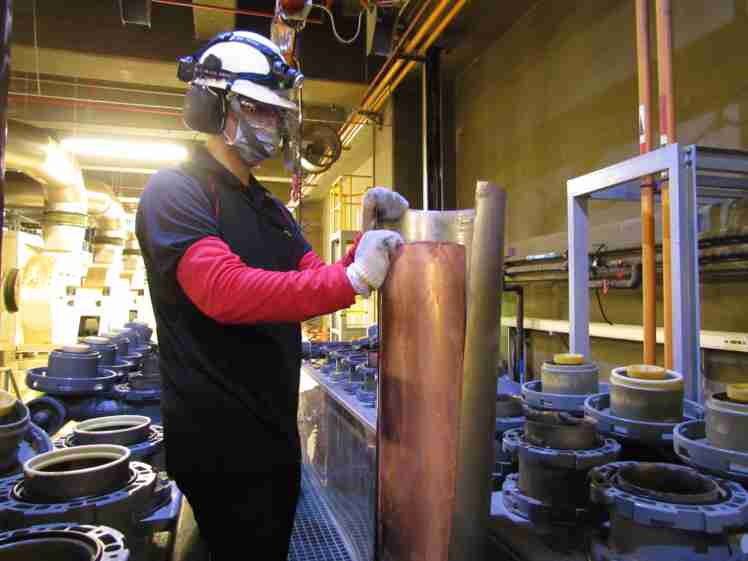 传奇国际将废弃物转化成有效的工业或民生原物料,,,图为废铜液淬炼后再制成纯度极高的铜管