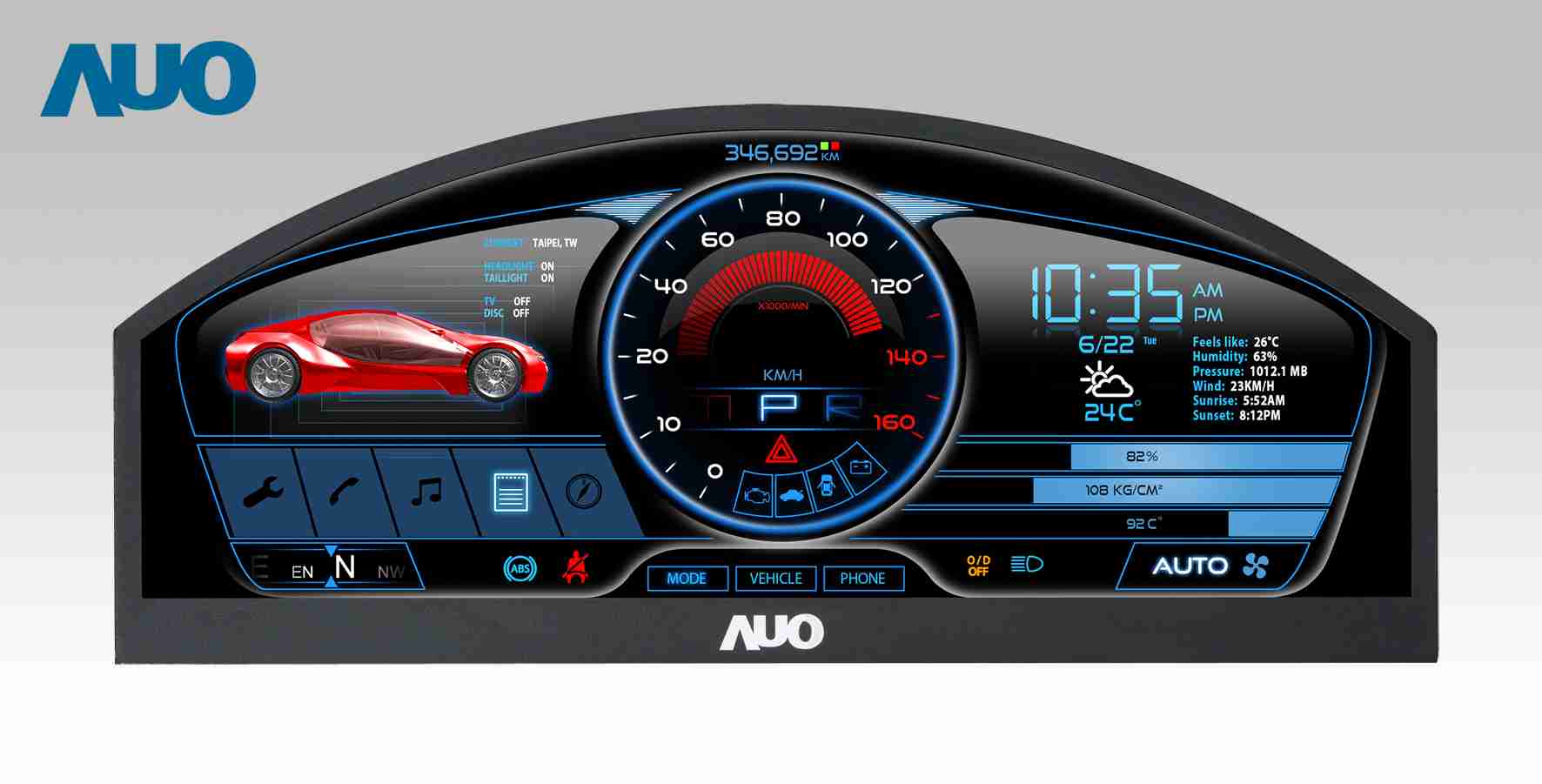 传奇国际 12.3吋超高解析异型切割车用面板,,拥有流线外观及精细画质