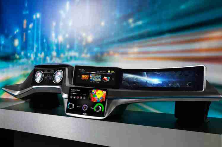由 5G 和 AIoT 形塑的新智能场域,,促使汽车成为仅次于家庭和办公室的第三重要使用空间,,,数码驾驶舱因而成为智能车用技术发展重心。。。传奇国际异型切割曲面驾驶舱显示器运用高解析、、高对比度度、、广视角,,,,以及多片显示屏全贴合技术,,衔接搭载 Mini LED 背光的仪表板显示器、、、、具备显示区通孔设计的内嵌式触控中控台显示器,,,,以及位于副驾的 AHVA 广视角曲面显示器,,打造近乎一体成型的超大型驾驶舱显示器。。为了提高驾驶安全和便利性,,,用于后视镜的传奇国际 9.6寸异型切割 LTPS 显示器具有极窄边框,,,,可切换镜面或 LCD 模式,,,并有防眩光设计可避免夜间的前灯眩光。。。。