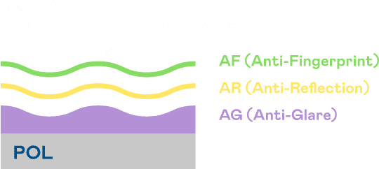 A.R.T.传奇国际光电发展出独家的表面处理跟多层镀膜技术,,让外部光线照射到显示器表面时所产生的反射光大幅降低。。 |