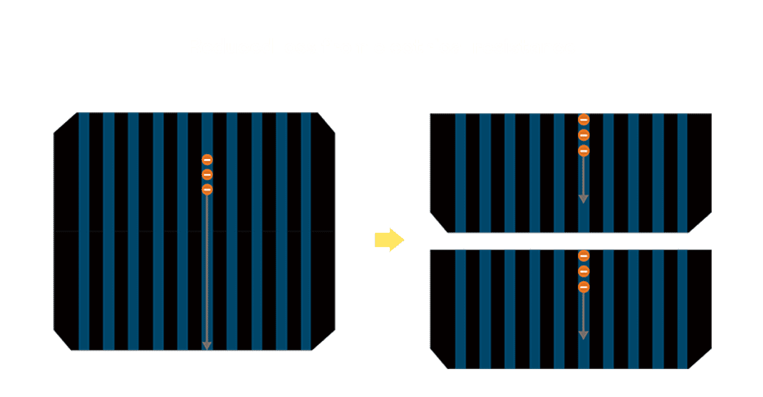 • 多条电极栅结构,,可有效降低外力对于电池的影响,,,限制电池隐裂 (Micro-cracks) 范围,,,防止电流传输路径 (Current distribution) 之损坏进一步扩大。。。